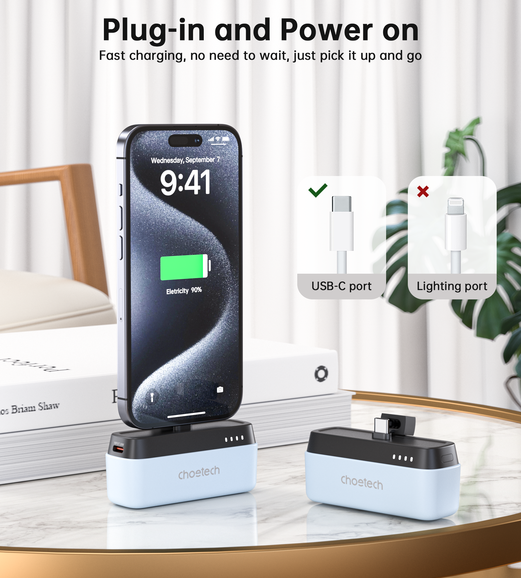 5000mAh Power Bank – PD20W with Type-C Plug, Blue