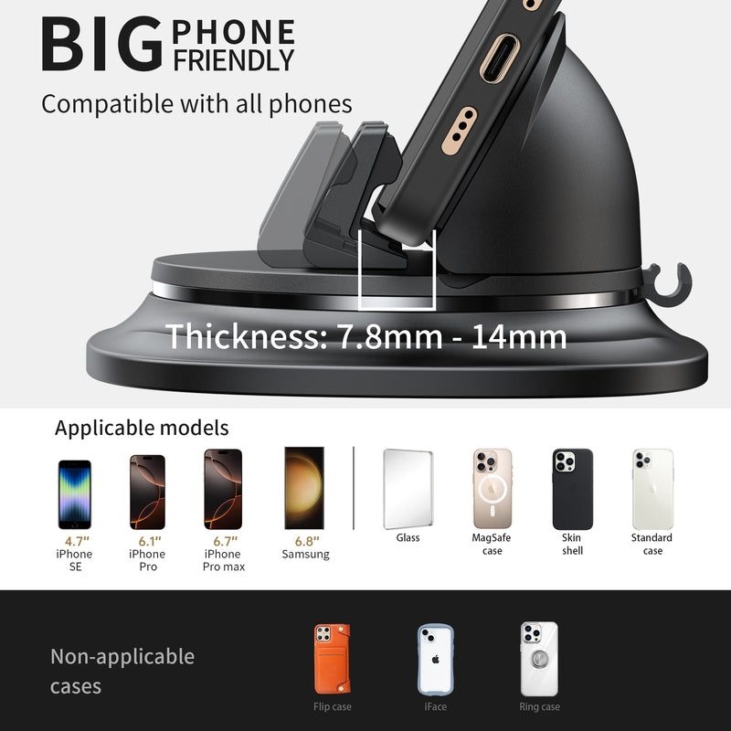 Compatible Devices: Supports phones with thickness up to 13 mm (including phone case)