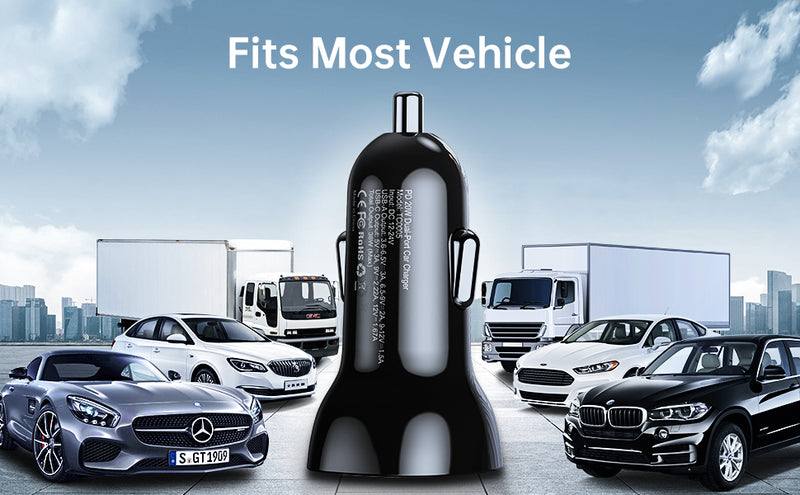 TC0005 USB-C-Autoladegerät, CHOETECH 36 W 2-Port-Schnell-USB-Autoladegerät 18 W Stromversorgung und Schnellladung 3.0 für iPhone 12/12 Pro Max/12 Mini/11 Pro Max/XS Max/SE, Galaxy Note 20/S20, Pixel 5/4 /3XL,iPad Pro,AirPods