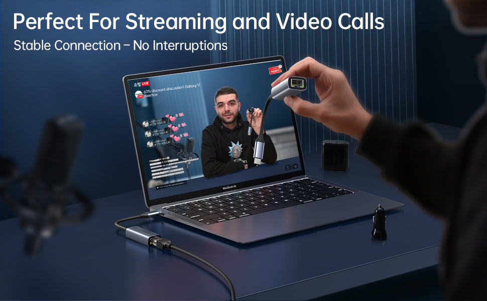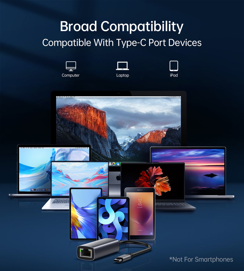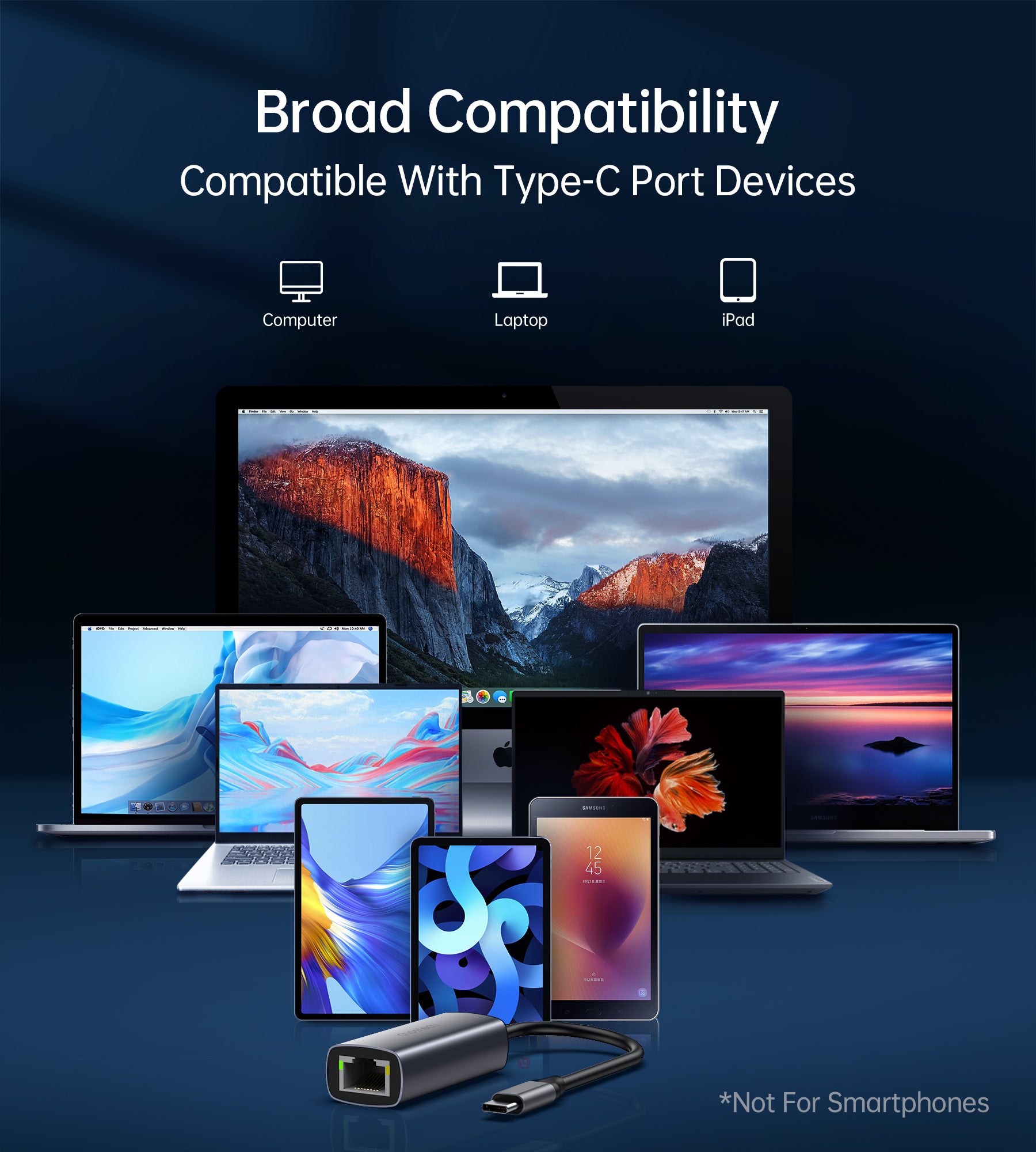 Leicht und tragbar: Dieser Ethernet-zu-USB-C-Adapter ist leicht, kompakt und bietet Platz für verschiedene Anlässe und ist so flexibel, wie Sie es benötigen.