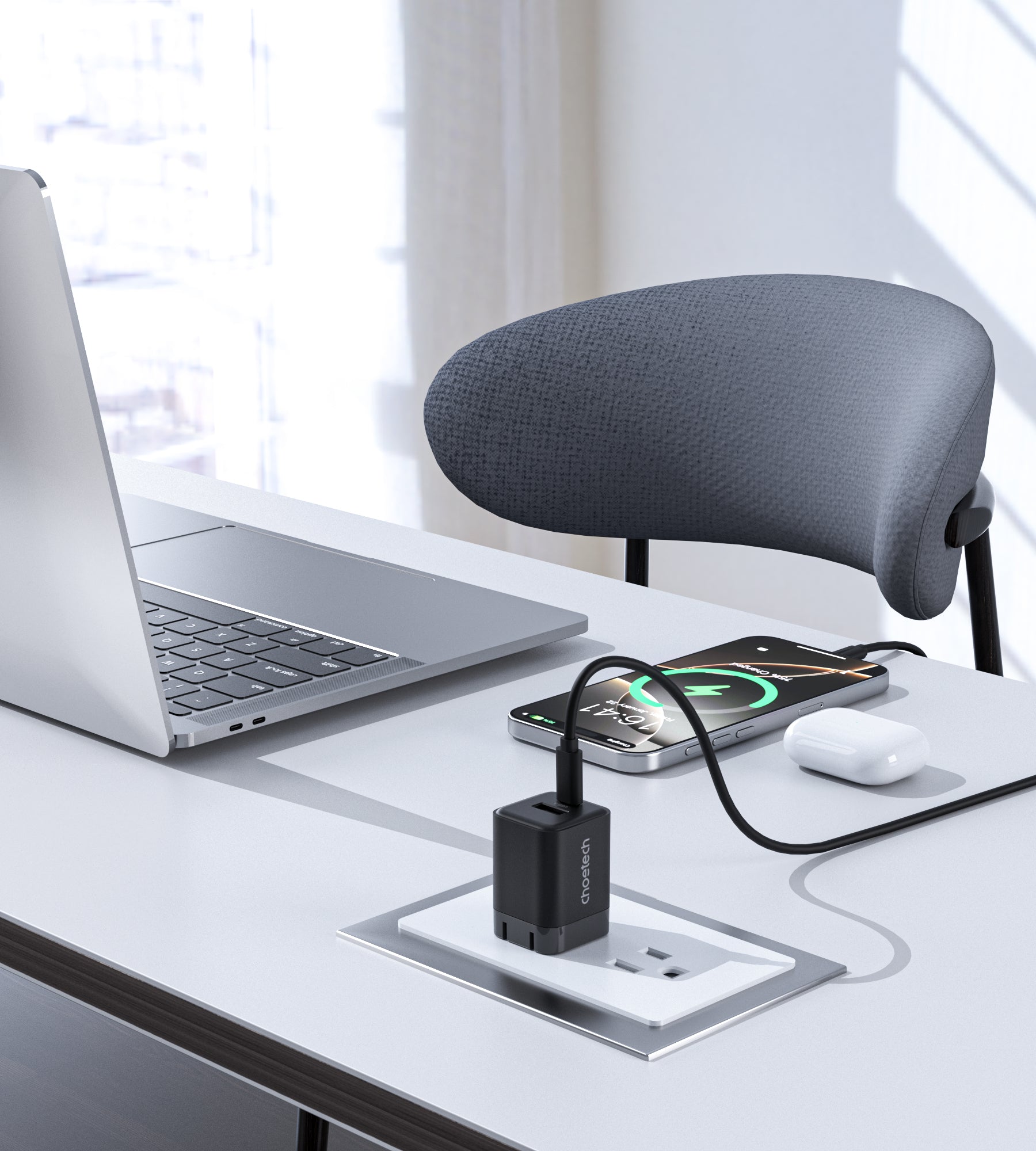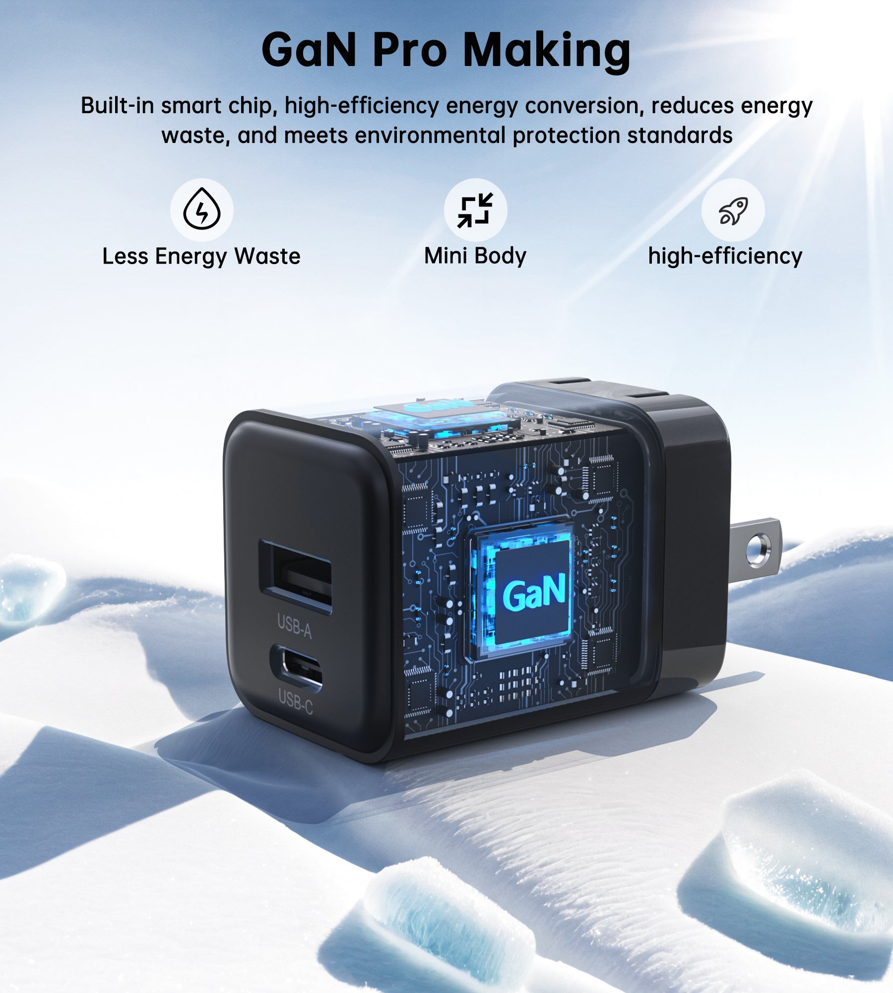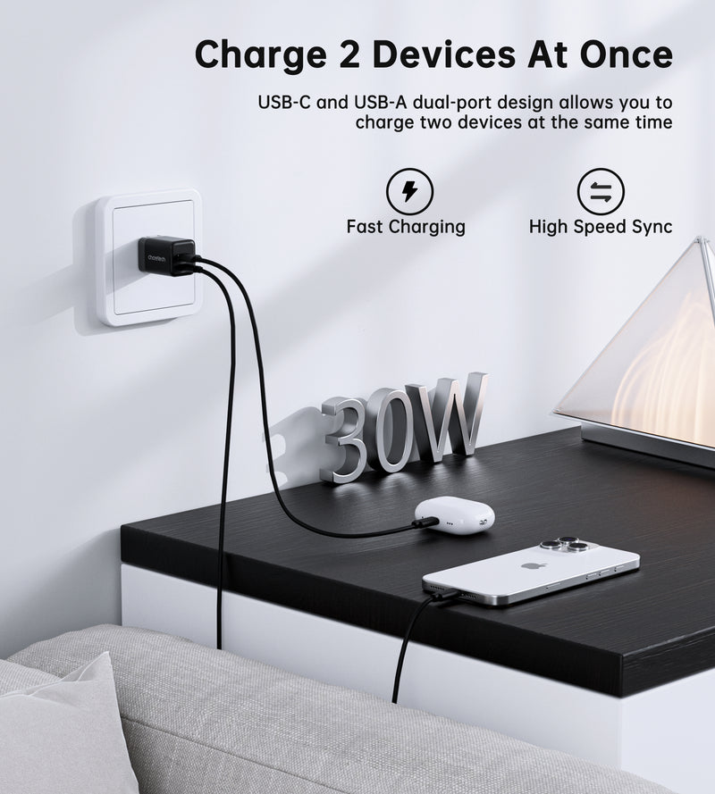 30W GaN Charger – Dual USB-C & A, for iPhone 16/15, US