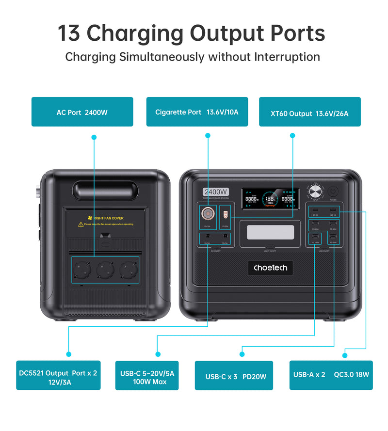 Experience reliable 2400W pure sine wave power with handle design- perfect for outdoor adventures and home backup needs.