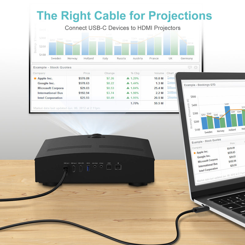 Solución perfecta para conectar una computadora portátil y un teléfono al proyector y televisor habilitados para HDMI para realizar una reunión o capacitación en la oficina.