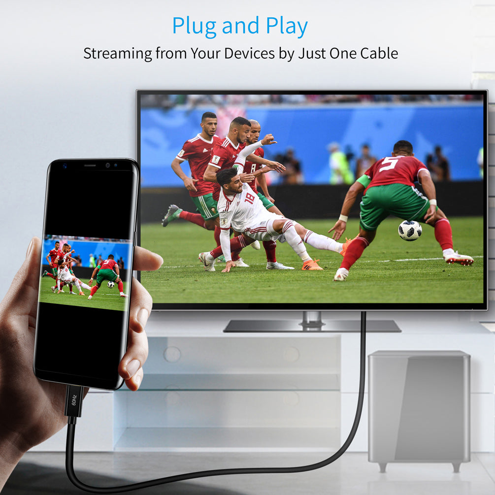 Transmita contenido 4K desde su teléfono, tableta, computadora portátil y computadora de escritorio a pantallas más grandes con alta velocidad. Simplemente conecte sus dispositivos a un televisor, monitor o proyector UHD con el cable Choetech USB tipo C a HDMI, no se requiere adaptador ni controlador.