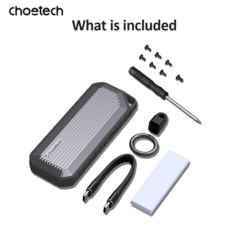 Transform any M.2 NVMe SSD into a sleek, high-speed external drive with the Choetech M.2 Enclosure – perfect for massive storage needs on the go.