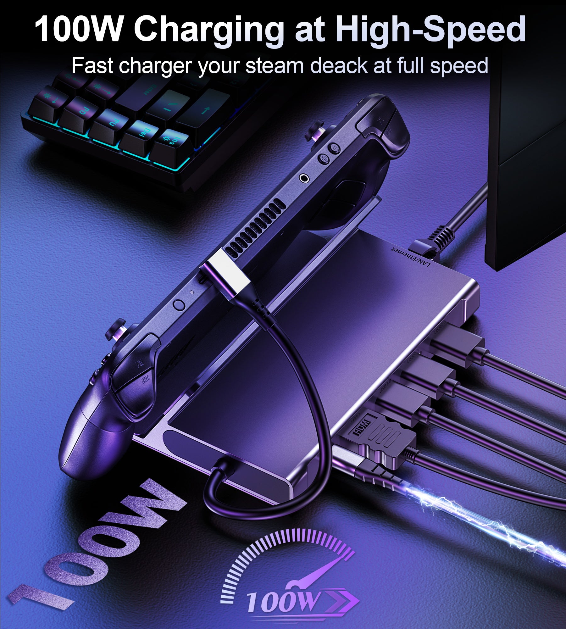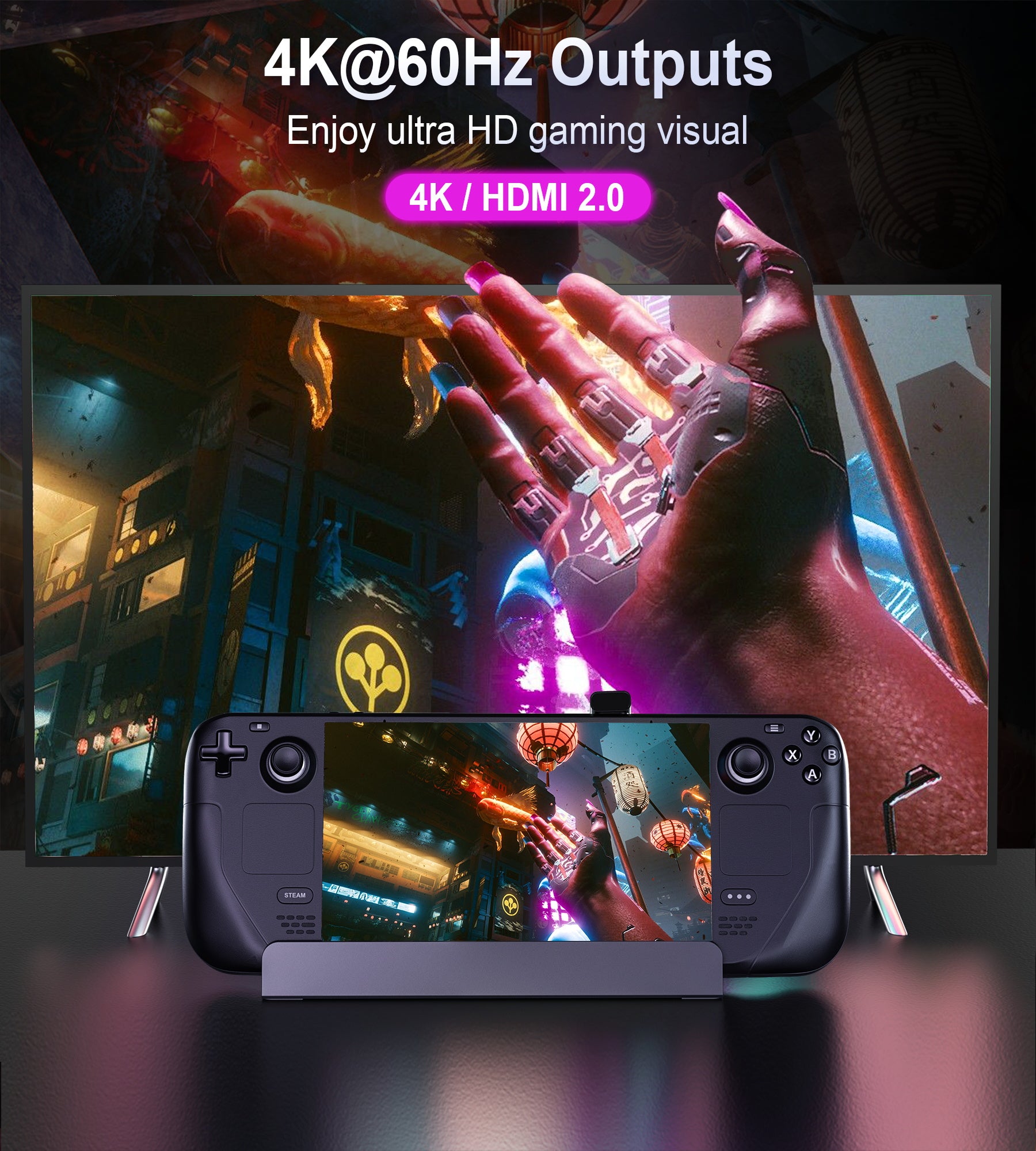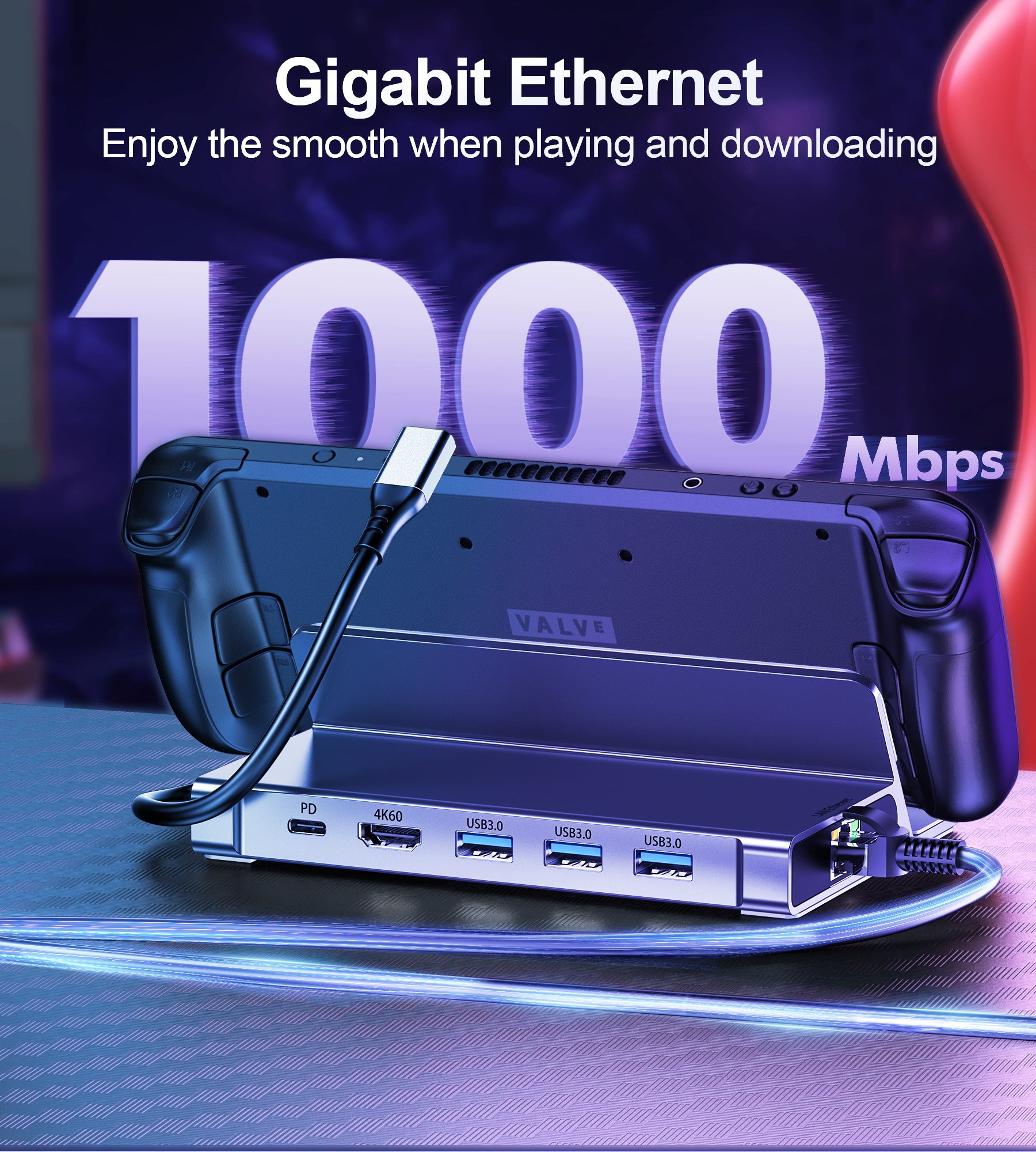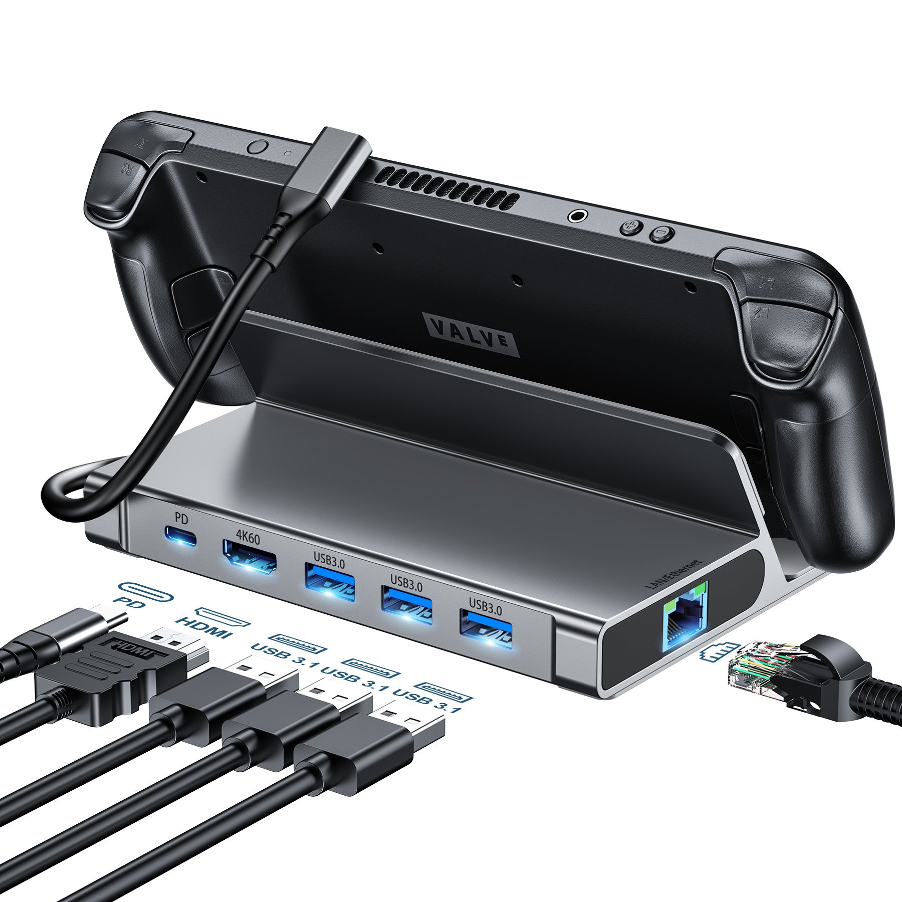 6-in-1 USB-C Dock – HDMI, PD, 3×USB-A, RJ45 for Steam Deck