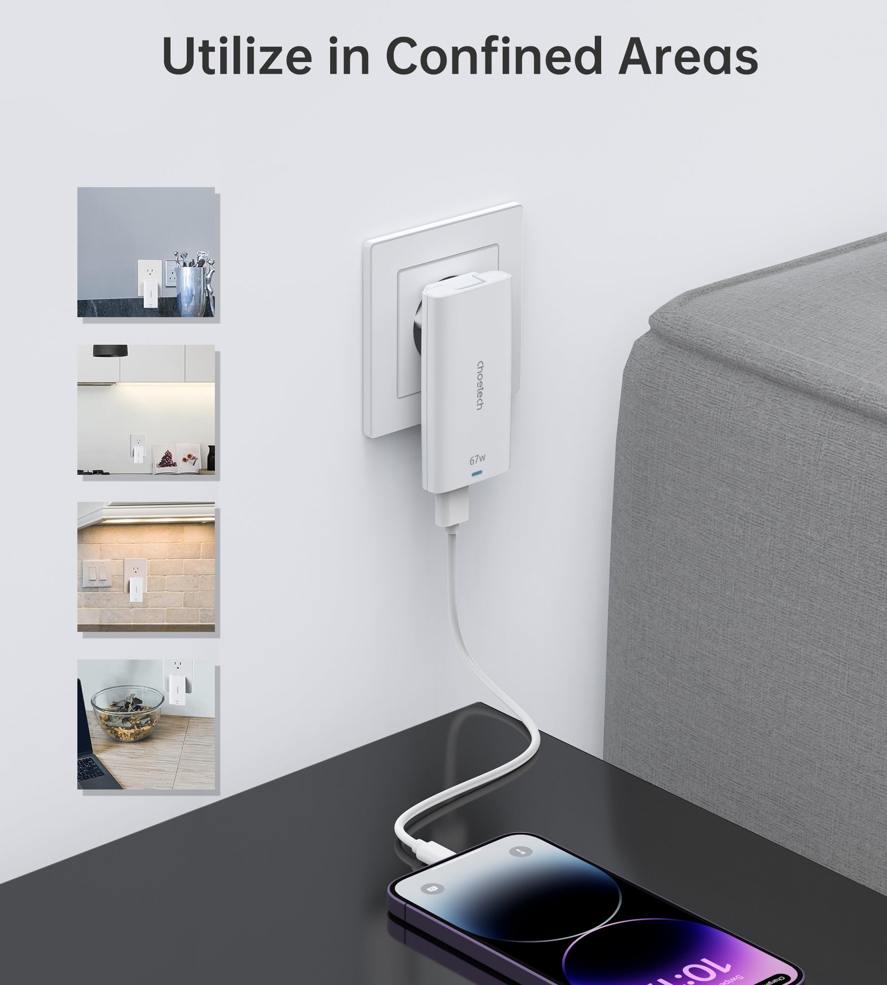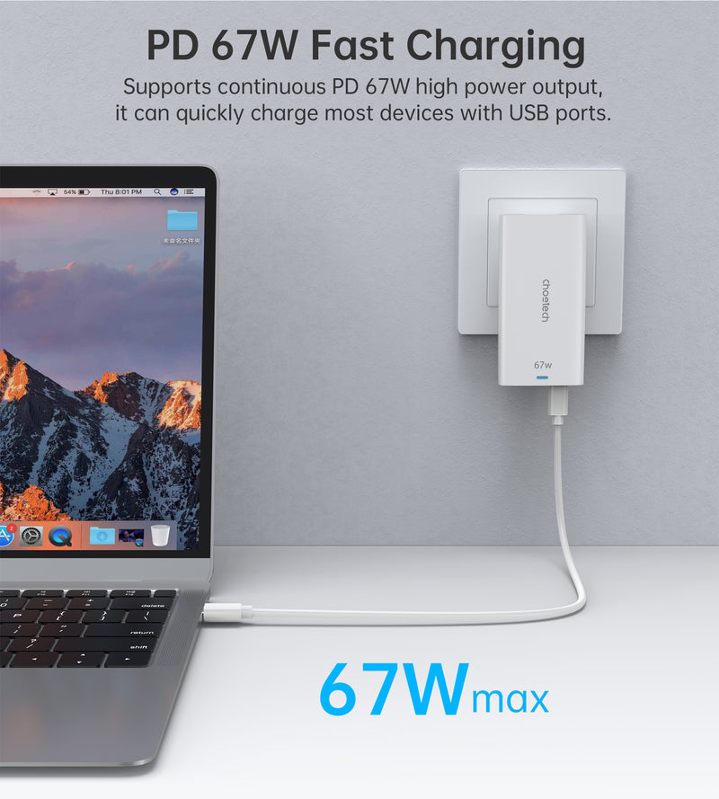 Choetech combined a laptop adapter and a phone charger in one slim, convenient and easily portable charger so you can carry fewer unnecessary devices. Stay powered up on-the-go: be it at your office, home or your local cafe.