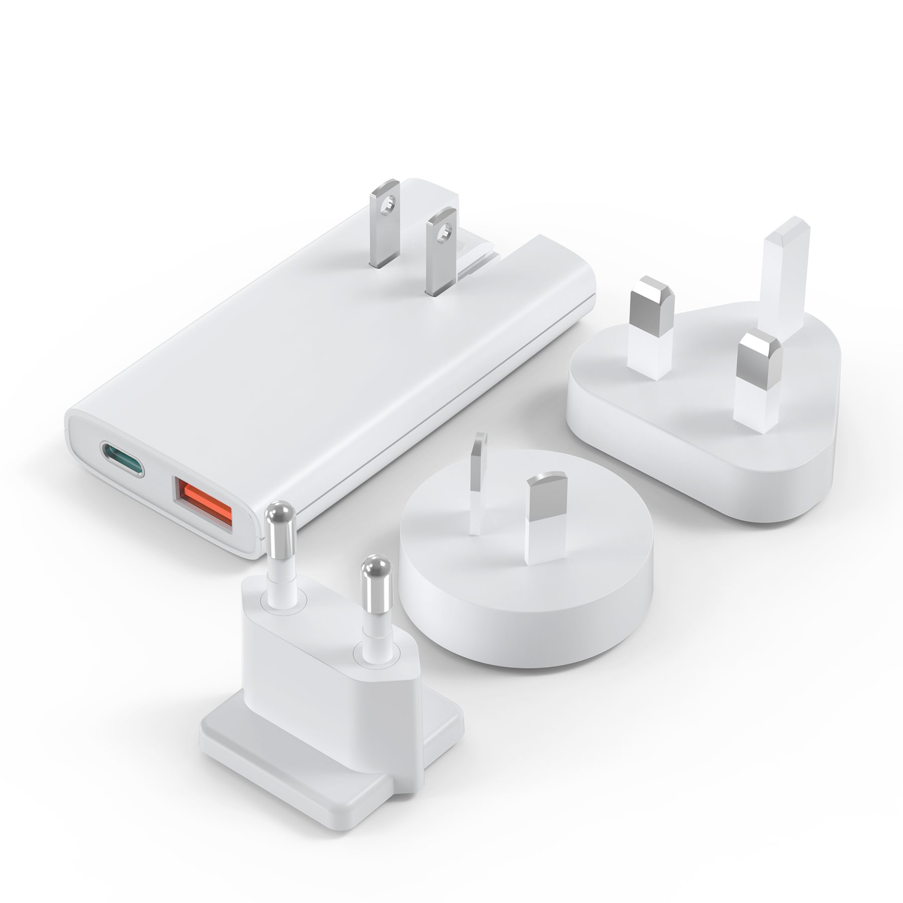 This set contains the three most common international plugs and the US plug so you can travel anywhere you want - as long as you pack the appropriate plug adapter.