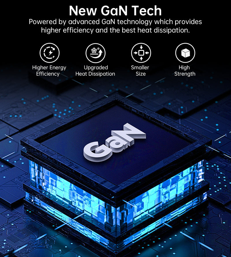 This portable adapter is powered by advanced GaN technology which provides higher efficiency and the best heat dissipation.