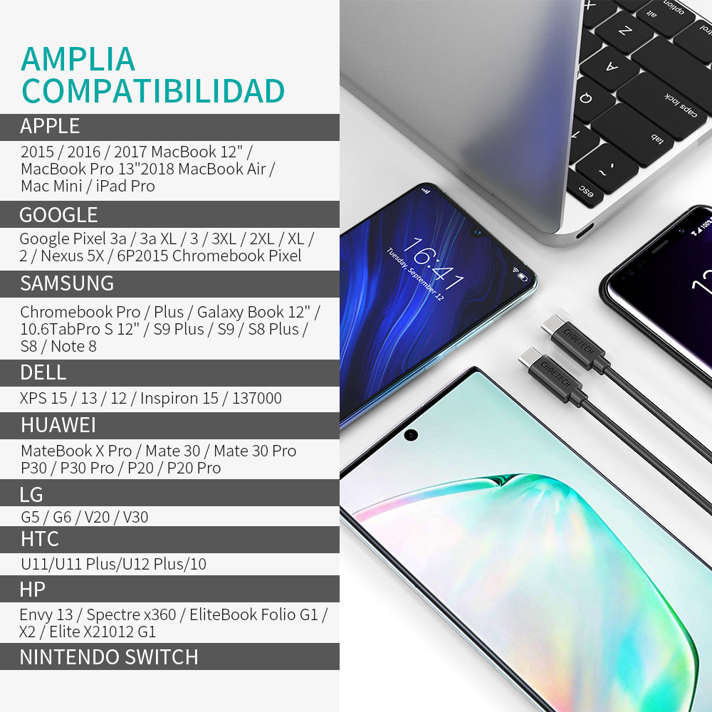 Choetech’s USB-C cable is compatible with Nexus 6P/5X, Nintendo Switch, Galaxy Note 8, S8/ S8+, Nokia 8, LG G5, Apple MacBook (12 inch, 2015), Nokia N1 Tablet, the ChromeBook Pixel (2015), Asus Zen AiO , Nexus 5X , Nexus 6P, Lumia 950, Lumia 950XL , Lenovo ZUK Z1 , HP Pavilion x2, Apple TV 4 and other Type-C USB-enabled devices for transferring data or charging.