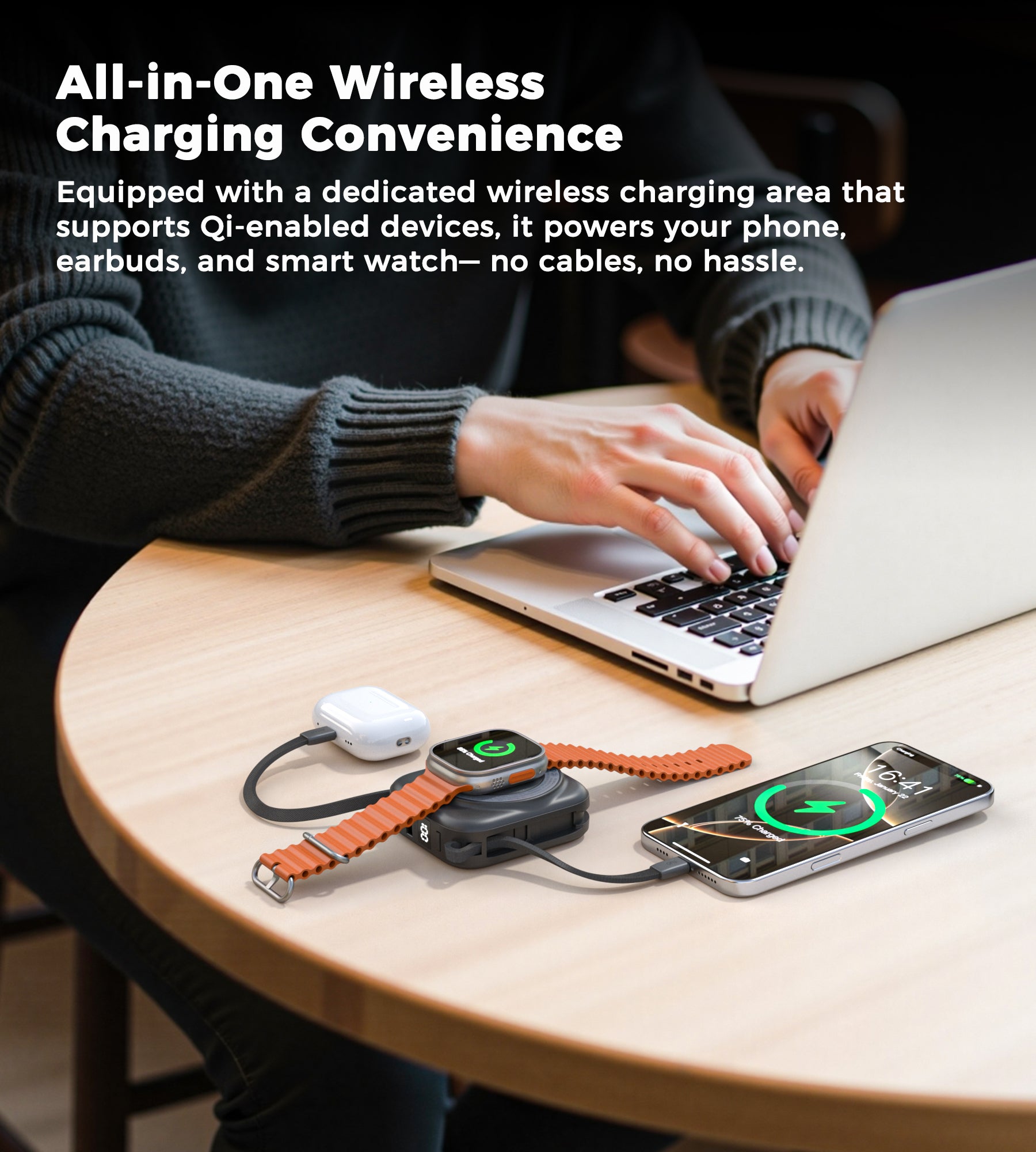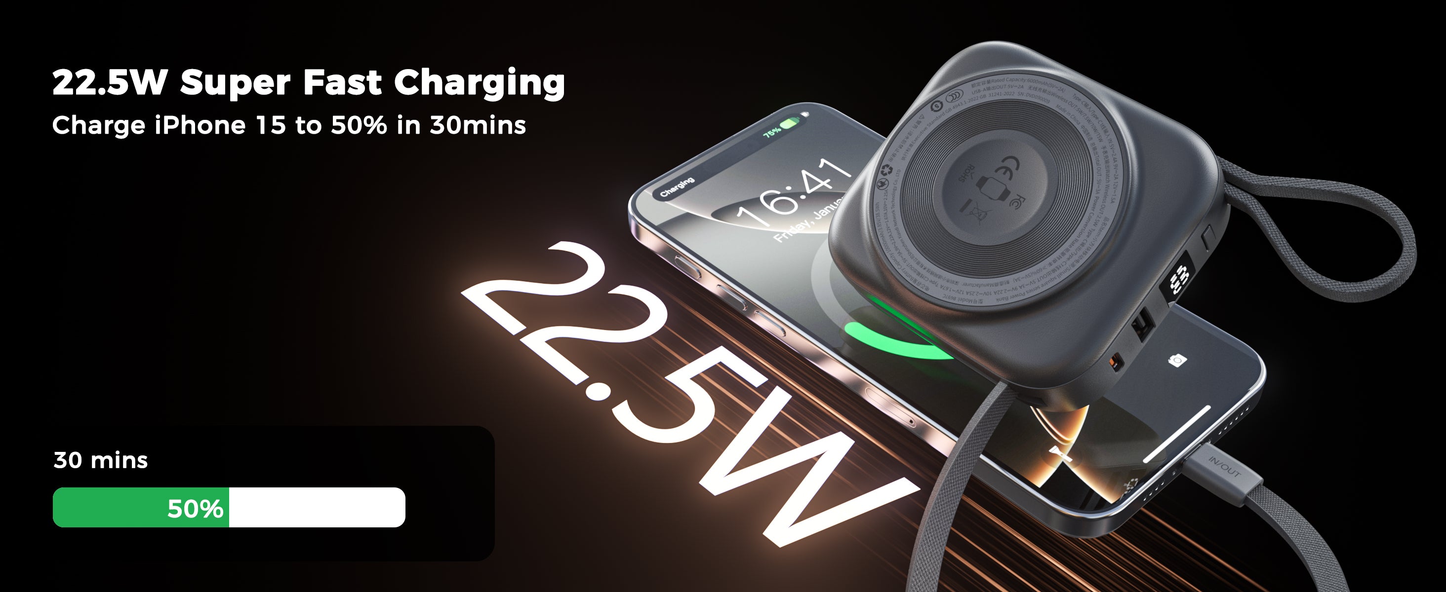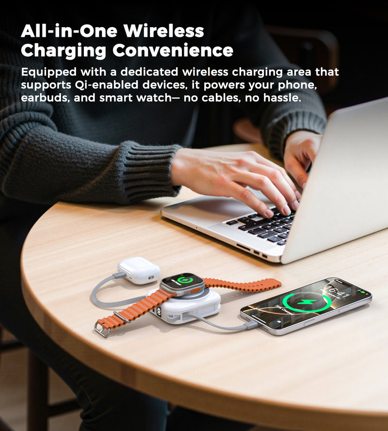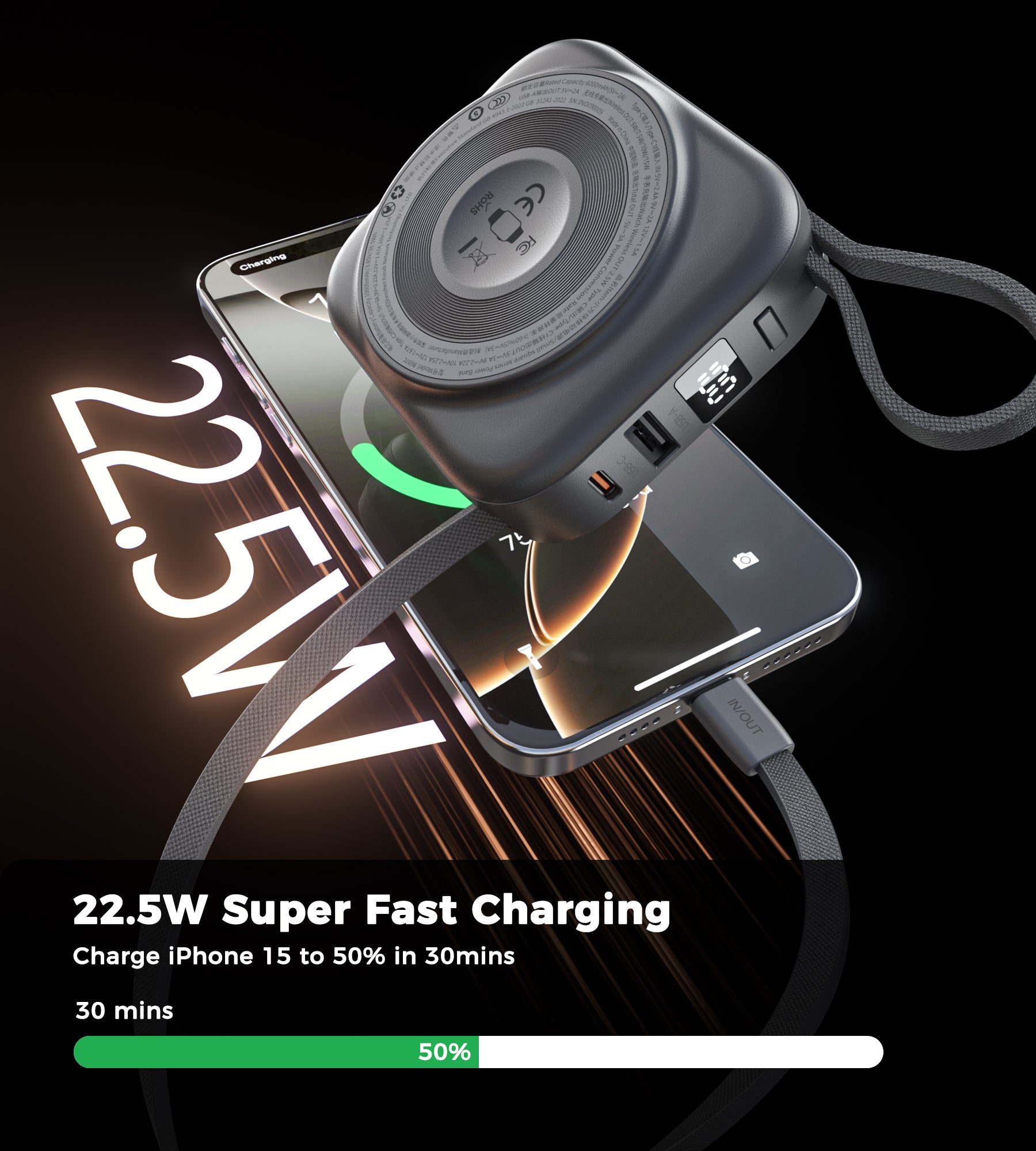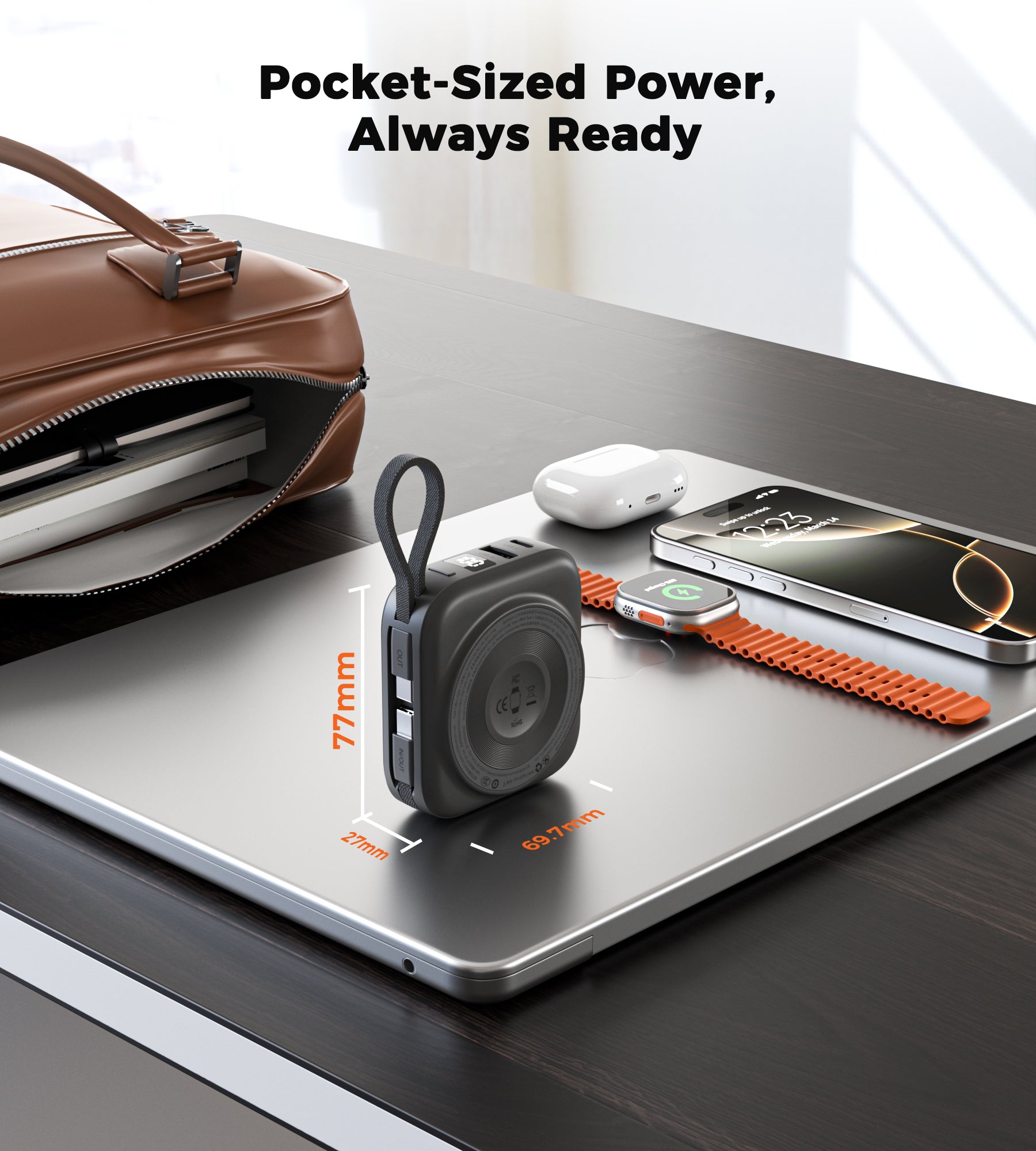 Model: B697C Material: ABS Interface: Type-C+USB-A port; type-c+C cable Battery: 10000mAh*2/4.35V; Polymer Batteries Input: Type-c: 5V/3A, 9V/2A, 12V/1.5A PD18w Output: Type-C: DC5V⎓3A 9V⎓2.22A 10V⎓2.25A (22.5W Max) USB-A: 5V/2A,10W Cable output: type-c1/c2: DC5V⎓3A 9V⎓2.22A 10V⎓2.25A (SCP) 12V⎓1.67A (PD20W/22.5W Max) Mobile magnetic output: 15W max Apple watch output: 2.5W max Material/Color V0 Anti-fire PC/white, black Certification FCC, CE, RoHS, PSE, CCC