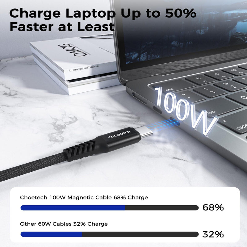 ✅100W High Speed: Powered by choetech leading technology, this 100W Magnetic Charging Cable can offer you up to 100W efficient charging experience, effectively having you get back to the fun of keeping powered up.