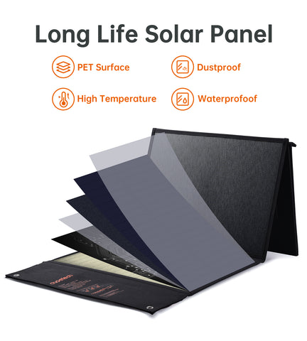 Choetech solar panel portable charger developed advanced high-purity monocrystalline solar cells which achieves 23% high efficiency, can generate more energy and perform better than conventional panels. 120 watt solar panel usb charger can charge your devices anywhere with clean energy.
