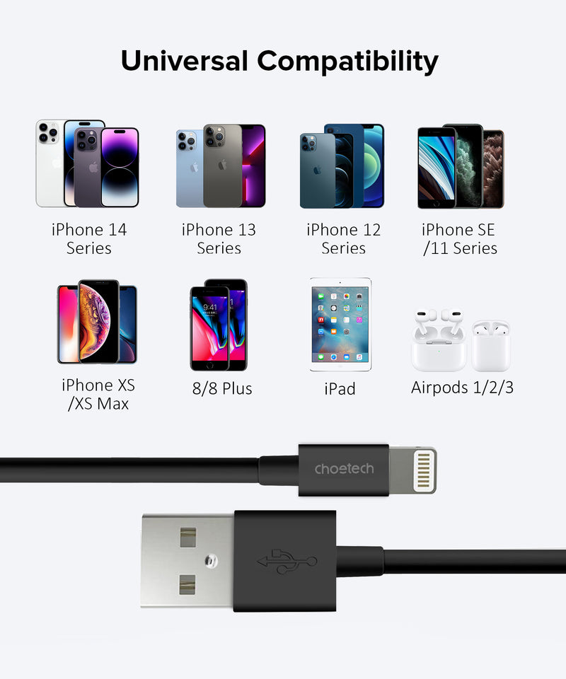 Say goodbye to "This accessory is not supported" warnings! The choetech USB-A to Lightning Cable is 100% MFi certified by Apple, ensuring safe, fast charging and seamless data sync for your iPhone, iPad, or iPod.