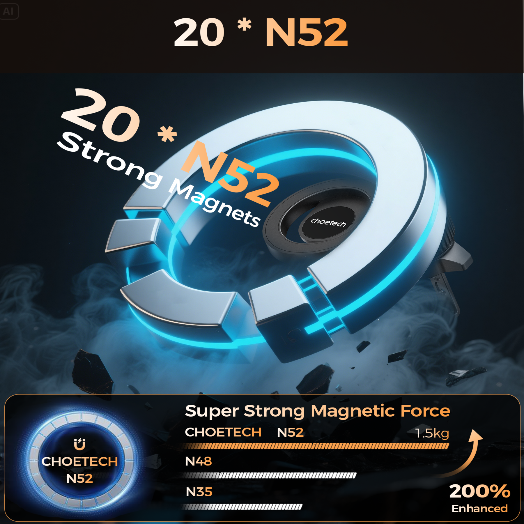 🧲 Powerful Built-in Magnet: Equipped with 20 N52-grade magnets for a firm, wobble-free hold on your phone — even over speed bumps or rough roads.磁力强劲的内置磁铁:配备 20 枚 N52 级磁铁,牢牢吸附手机,即使经过减速带或颠簸路面也不会晃动。磁力强劲的内置磁铁:配备 20 枚 N52 级磁铁,牢牢吸附手机,即使经过减速带或颠簸路面也不会晃动。