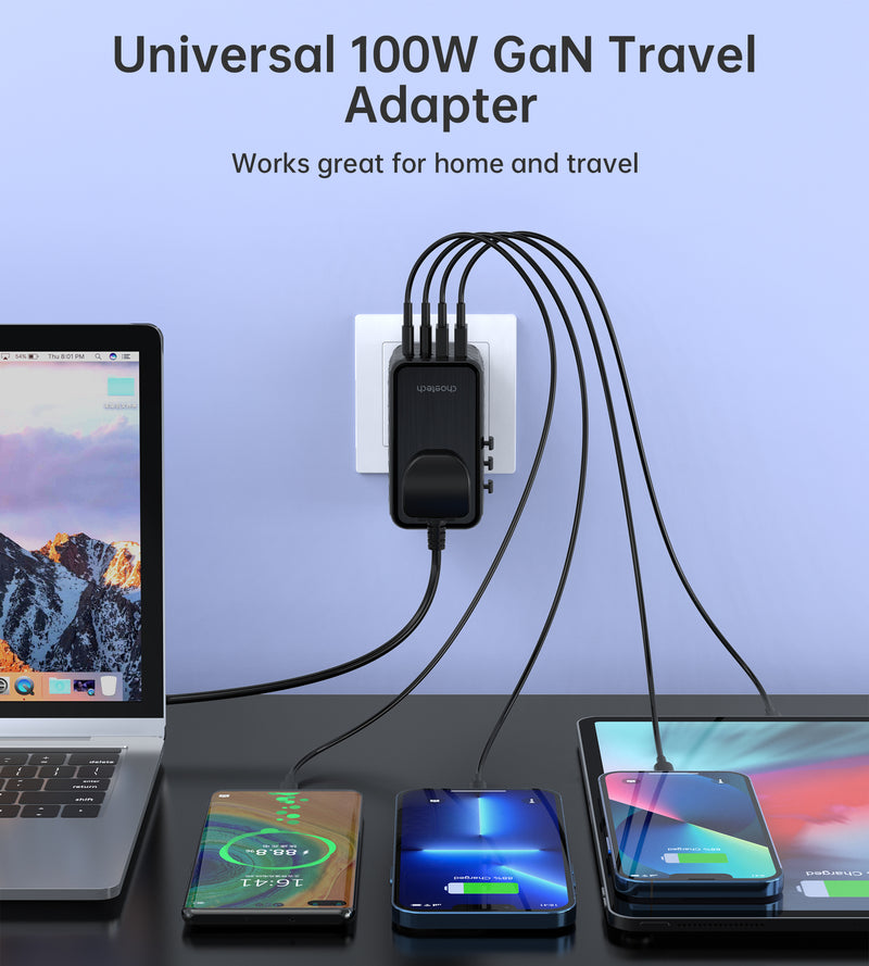 100W PD Wall Charger – Dual USB-C + Dual USB-A Ports