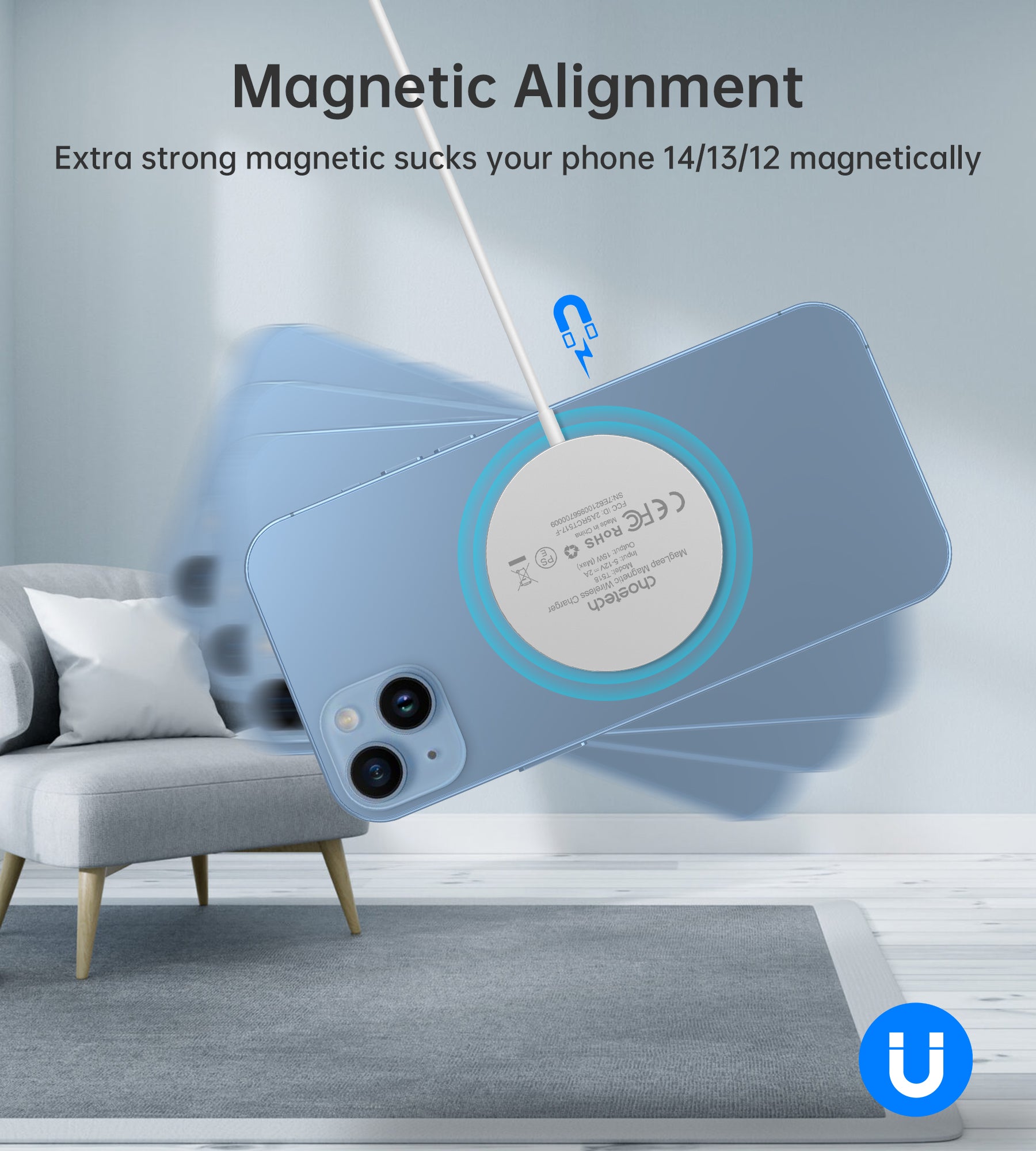 Magnetic Charger for iPhone 12-16 Series】 Specially designed for12-16 Series, AirPods 3/2 Pro and Mag-Safe case, it holds your cell phone stably and charges rapidly. iPhone Mag-safe charger is also quite easy to attach and detach your phone from the mag charging holder.