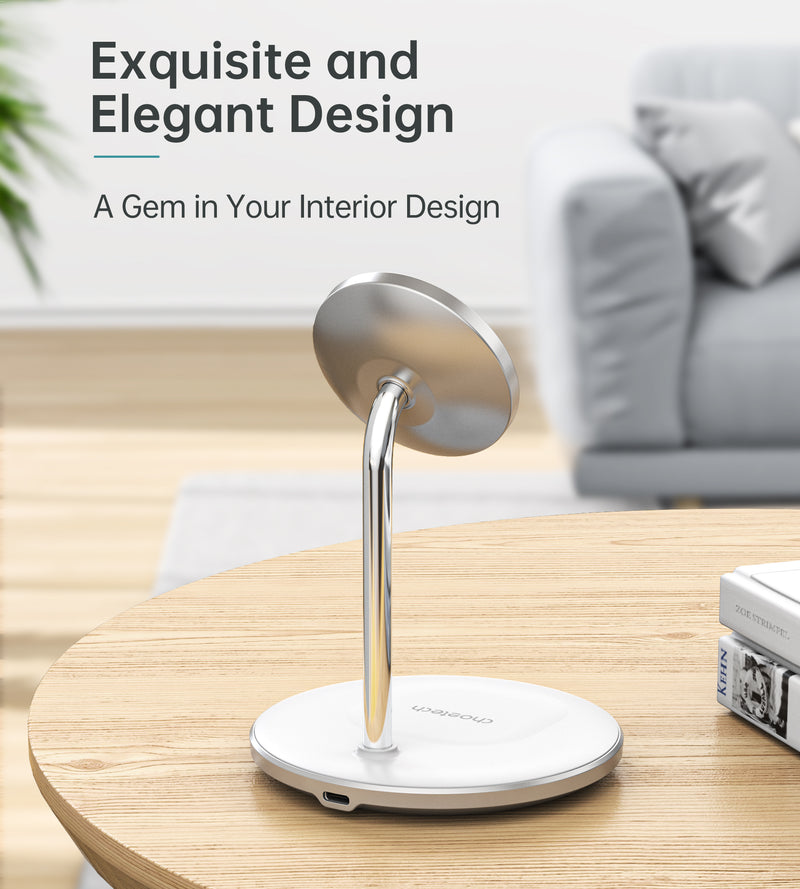 🧲 Magnetic 2-in-1 Charging: Precision magnetic array simultaneously secures and charges iPhone, Apple Watch, and AirPods. Features a 30° adjustable stand for comfortable viewing while charging.