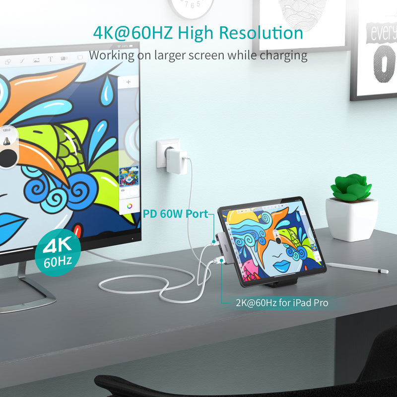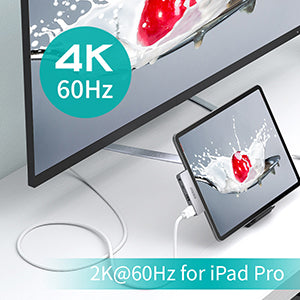 The USB-C to HDMI port lets you stream apps such as Netflix, prime, or connect your laptop to your UHDTV, enjoy Ultra HD 4K movies with your friends at home. Or connect to a projector and do a presentation or speech in the classroom using your iPad with a direct HDMI to HDMI connection. Note: 2K@60Hz for iPad Pro. The USB-C port supports power delivery up to 60W and allows video streaming while still charging.