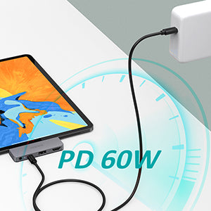 While you're transferring photos, streaming movies from your laptop to the TV with an HDMI cable, you can quickly charge your devices at 60W without having to worry about battery or connection interruptions. Note: Please use the corresponding charging adapter.