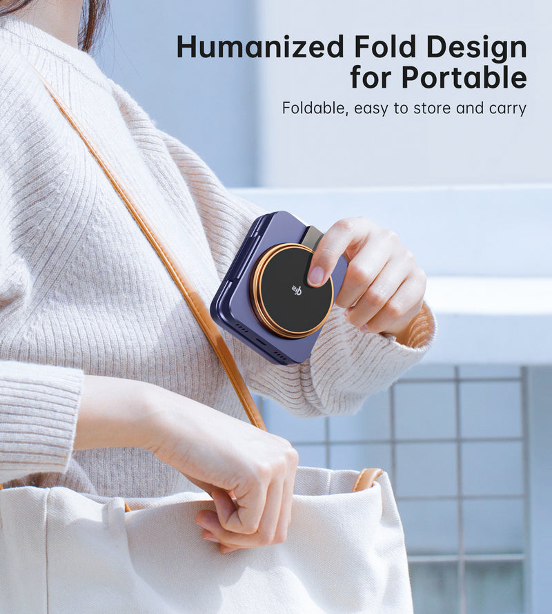 π Tri-Fold Compact Design: Foldable structure allows for easy storage and portability, enabling charging in both flat and upright modes for convenient viewing while powering up.