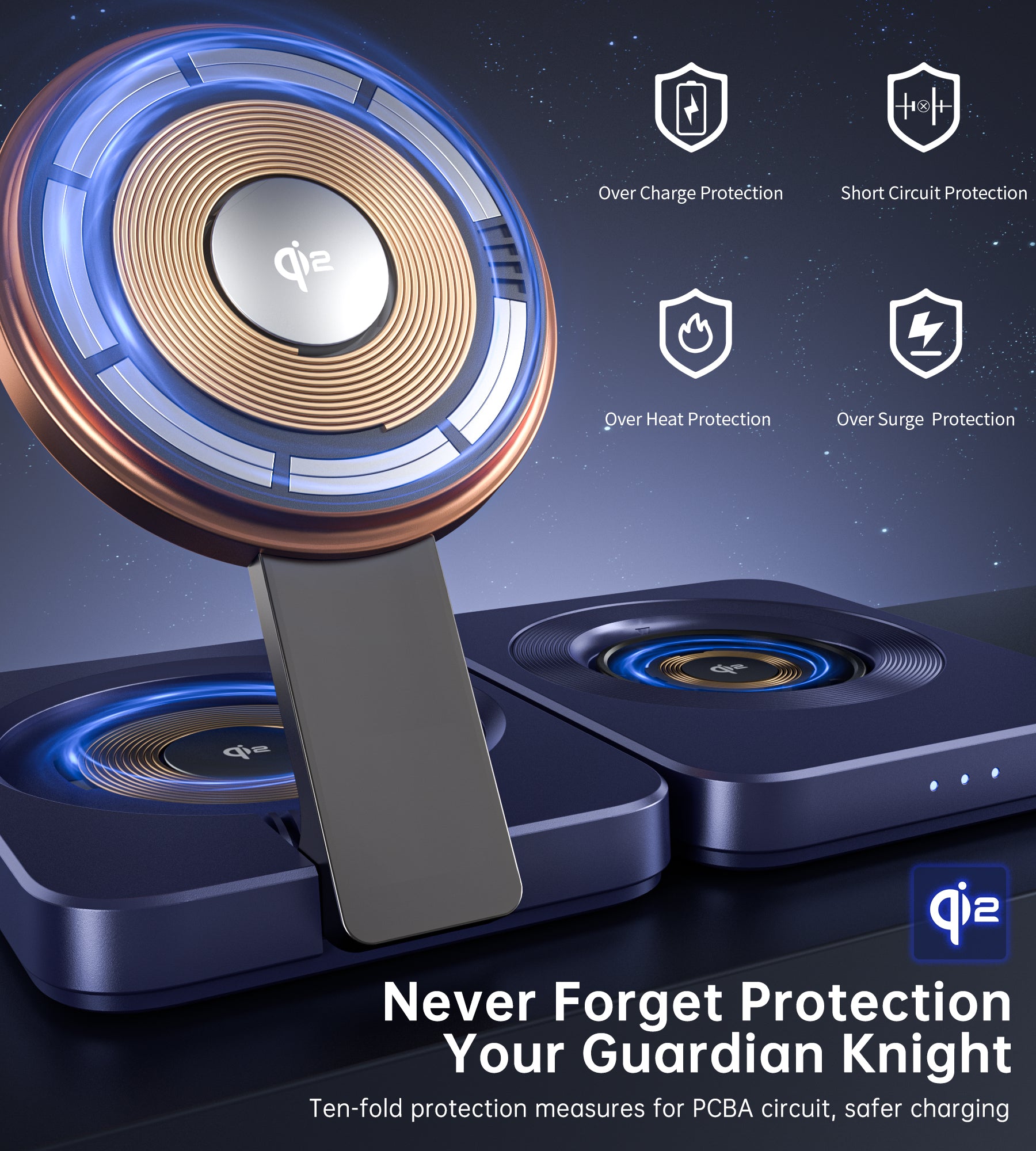 π Qi2 15W Fast Charging: Apple-certified Qi2 protocol delivers 15W rapid charging for iPhone 12-16 series (including Pro Max).