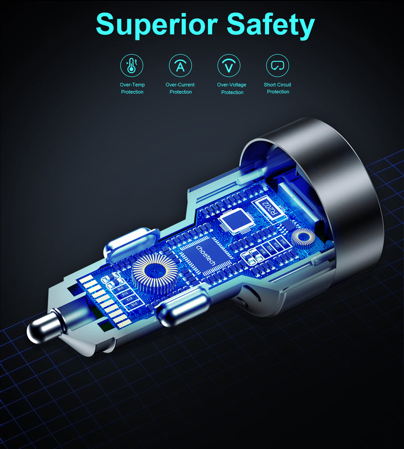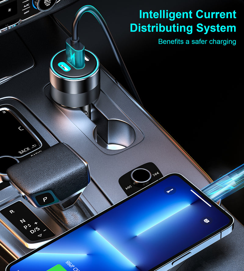 130W Dual USB-C & USB-A Car Charger – Fast Charge