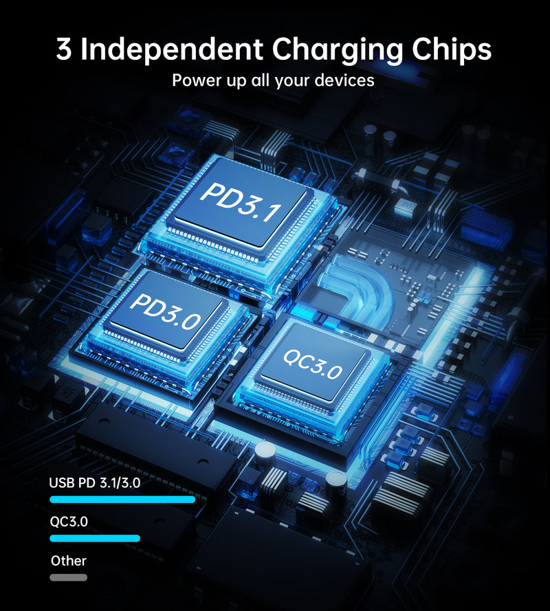 📱 Wide Compatibility: Supports PD3.1, PD3.0, QC3.0, QC2.0, and iP 2.4A — ideal for nearly all laptops, smartphones, tablets, and accessories.
