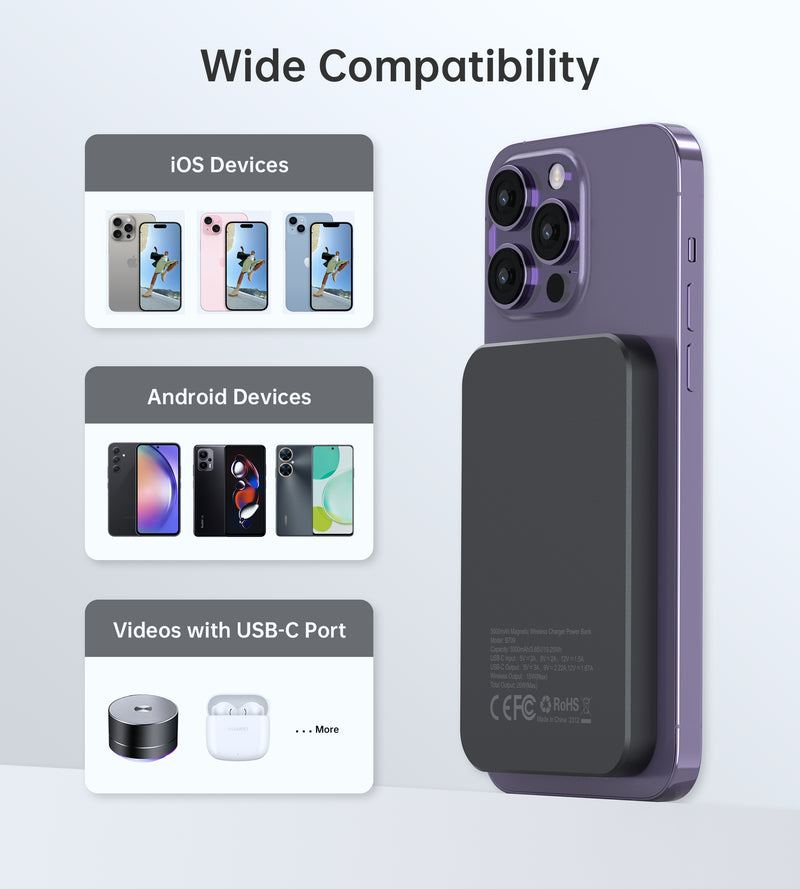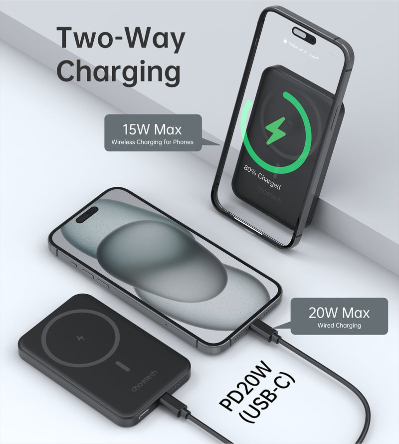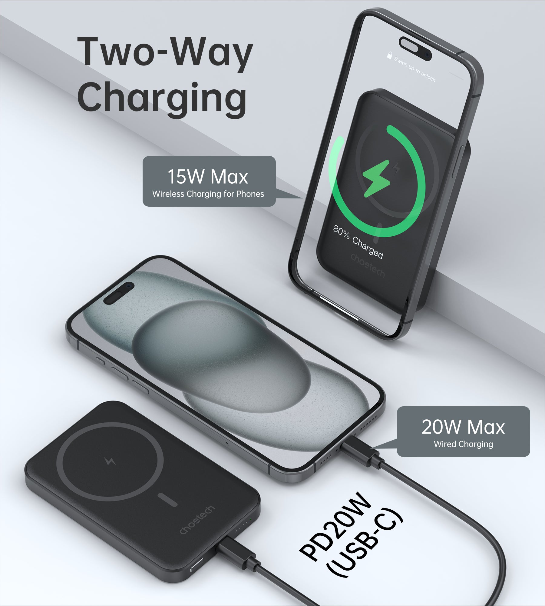 20W 5000mAh Magnetic Power Bank – Slim & Black Design