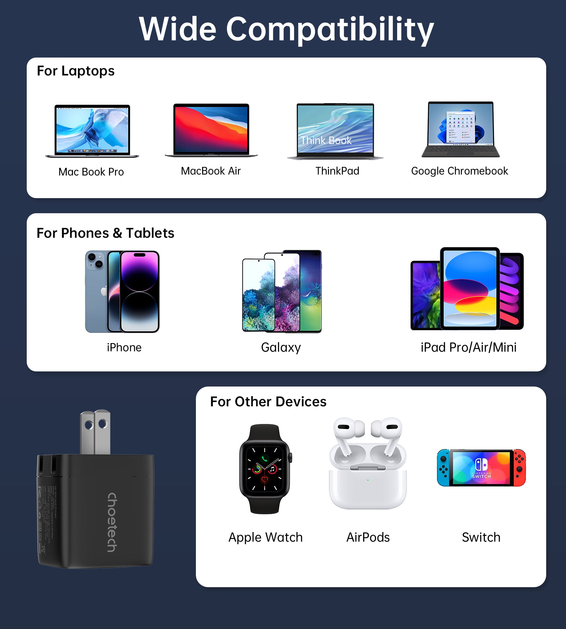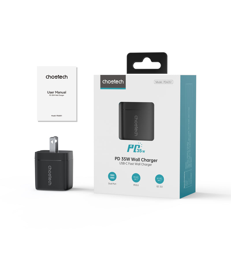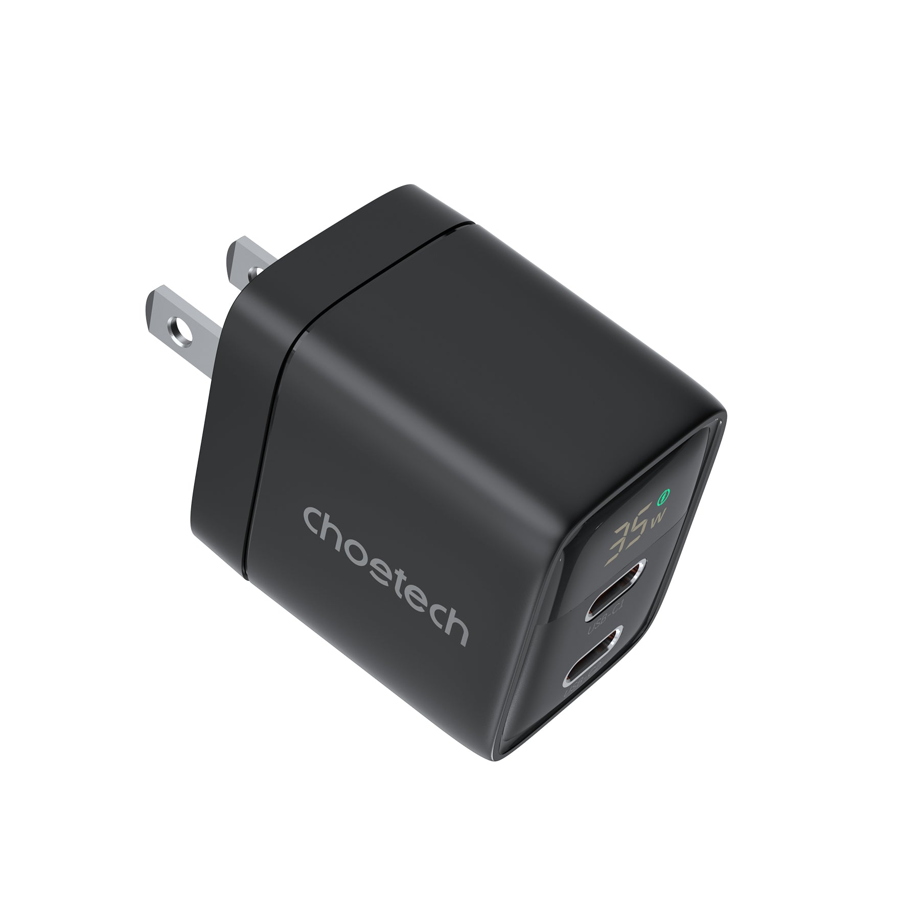 Choetech PD6051 GaN USB-C and USB-C PD 35W Charger with Display - Black