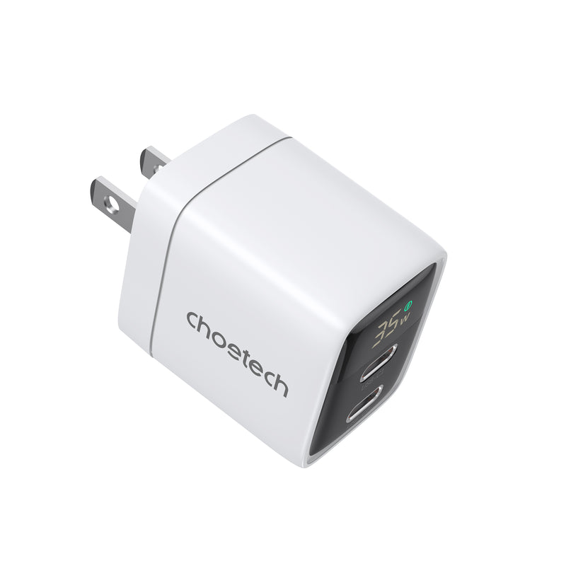 GaN 35W Wall Charger – Dual USB-C, Display, US
